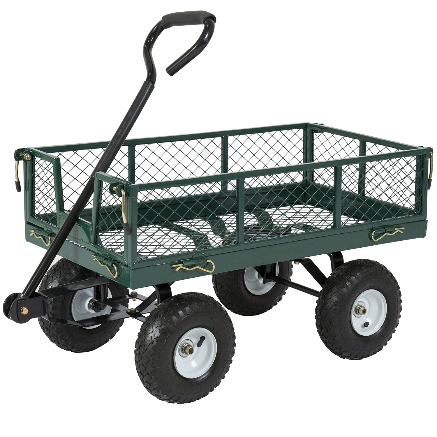 Best Choice Products Utility Garden Cart Wagon For Lawn, Yard W/Heavy-Duty Steel 400lb Weight Capacity, Removable Sides, Long Handle, 10in Tires – Green