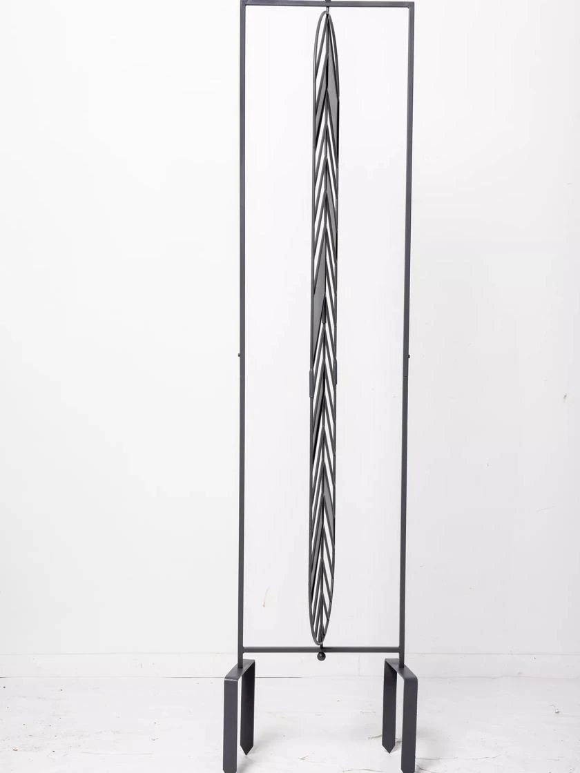 - Chevron panel pivots inside the frame