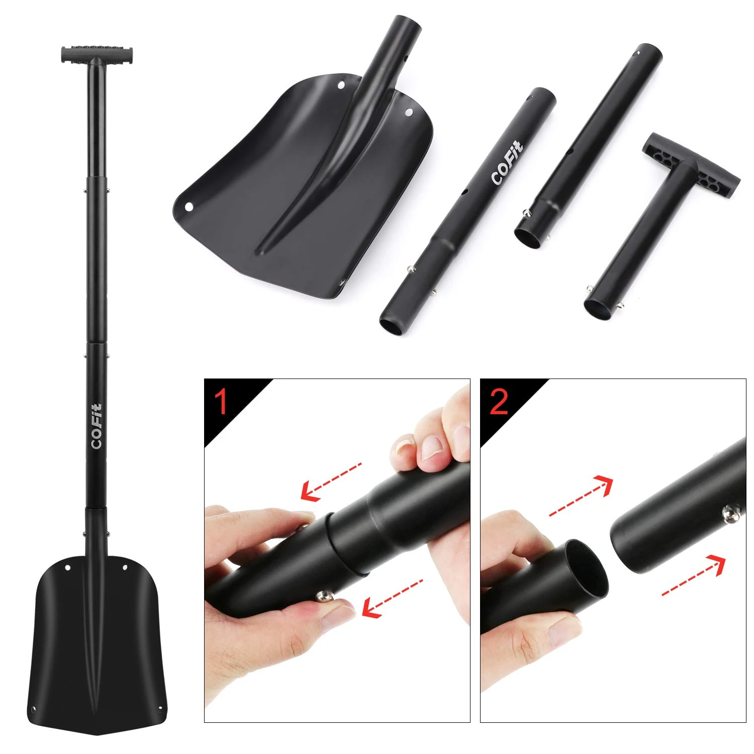 COFIT Retractable Snow Shovel, Aluminium Alloy Snow Sand Mud Removal Tool For Car Outdoor Camping And Garden, Detachable Four-Piece Construction