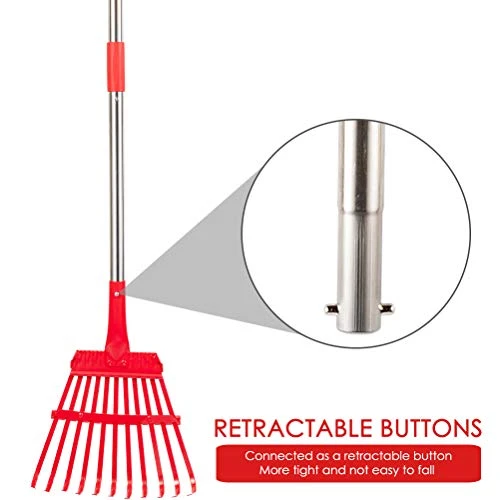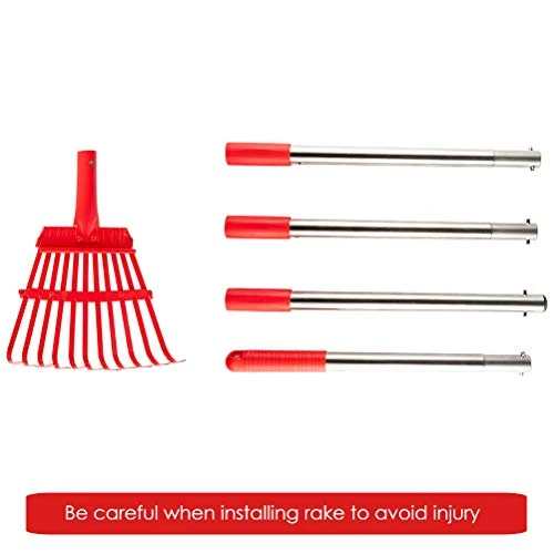 ADJUSTABLE HANDLE: The rake can adjust overall length from 34 to 55 inches by connecting different numbers of tubes.