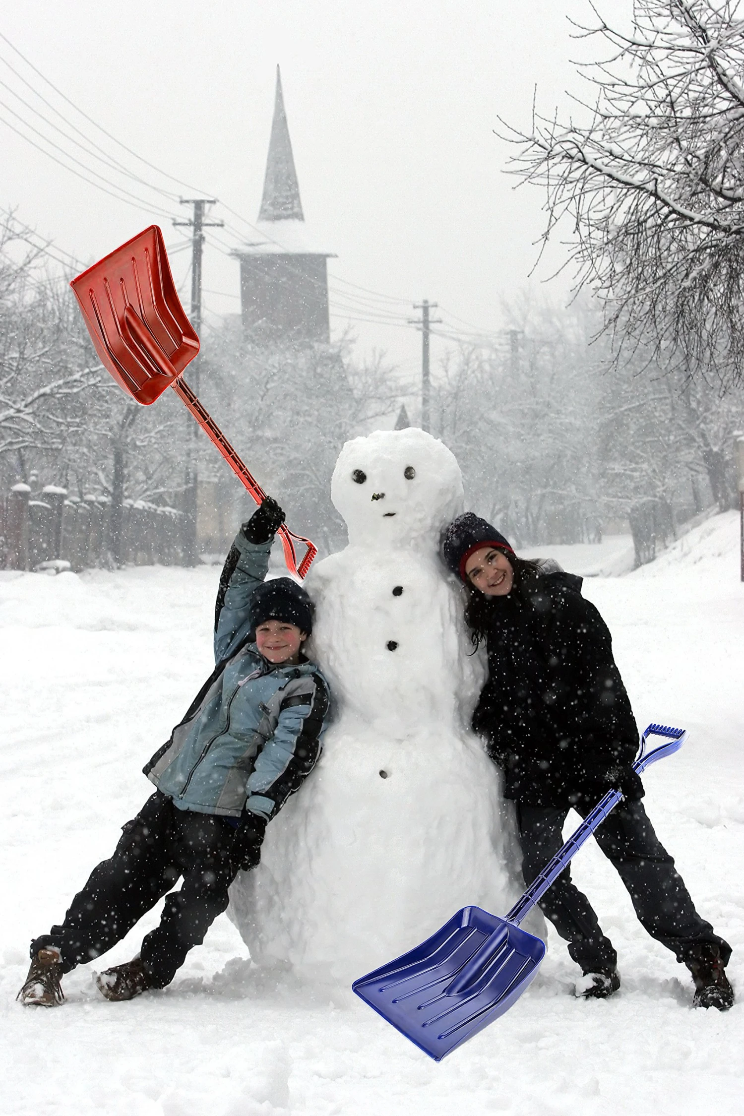 Versatile colors – Includes one (1) Red and one (1) Blue, in total two, kids snow shovels.