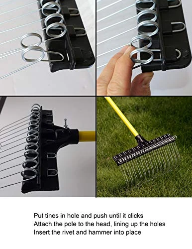 28 steel tines, 55-inch yellow fiberglass deal with, 21-inch head (tines & deal with can also be purchased one by one)