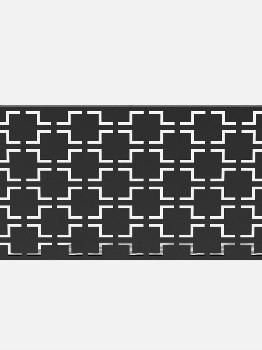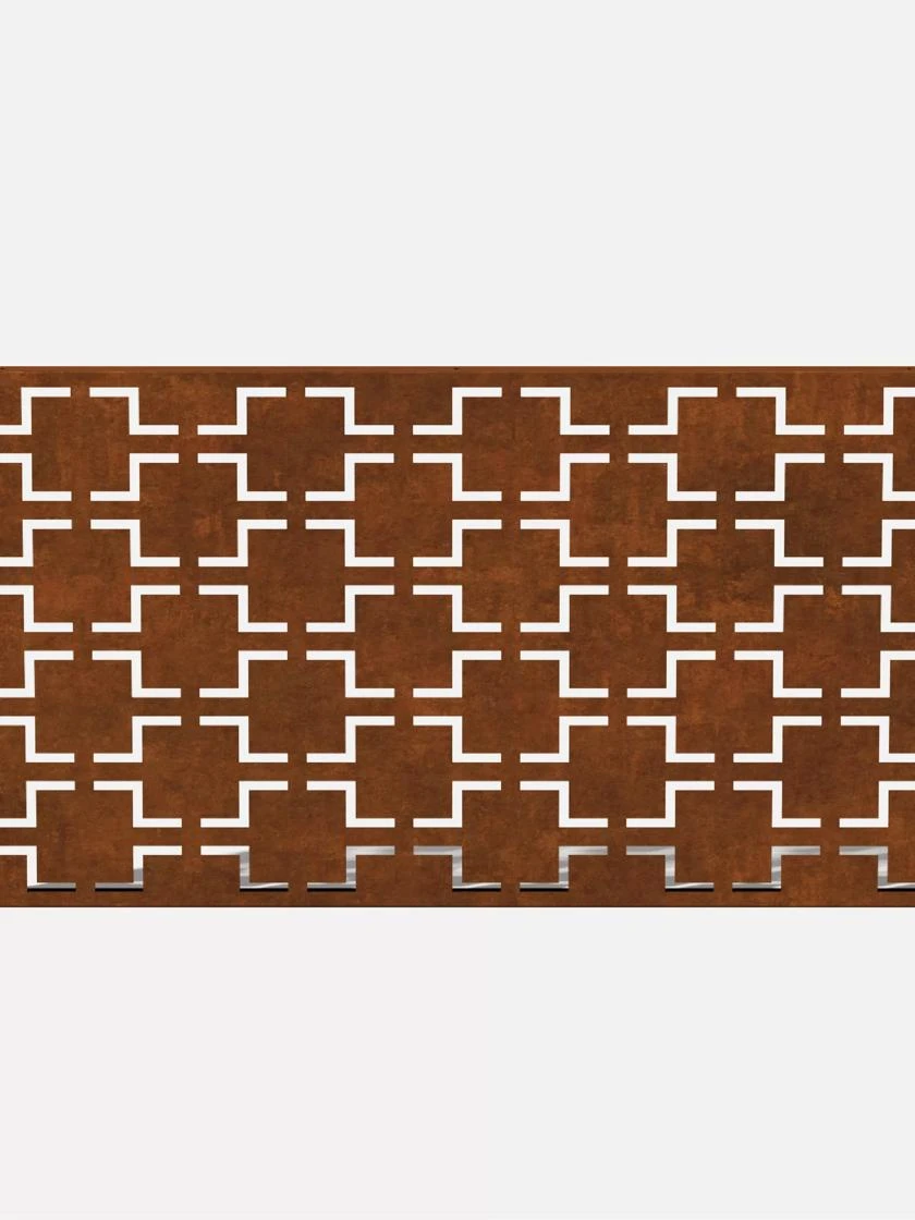 This screen is made from 1.5 mm laser cut steel designed to resist corrosion through all seasons. Solid, yet lightweight, the black galvanized steel screen is protected by a strong, scratch-resistant powder coating that is treated with UV inhibitors to minimize fading. The Corten steel screens are shipped in their raw steel state, gradually developing an attractive and protective patina of rust that safeguards the base metal from corrosion.